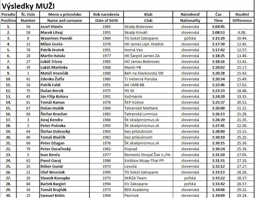 veku. Viac podrobností ohľadom výsledkov je vo výsledkovej listine.