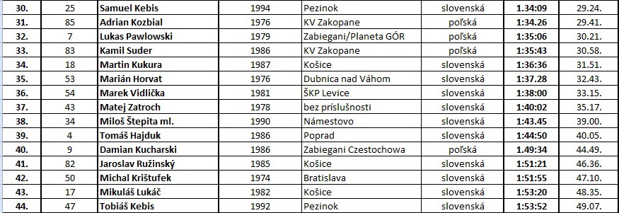 kategóriách. Bolo ohodnotených prvých 7 mužov do 39 rokov, ďalej